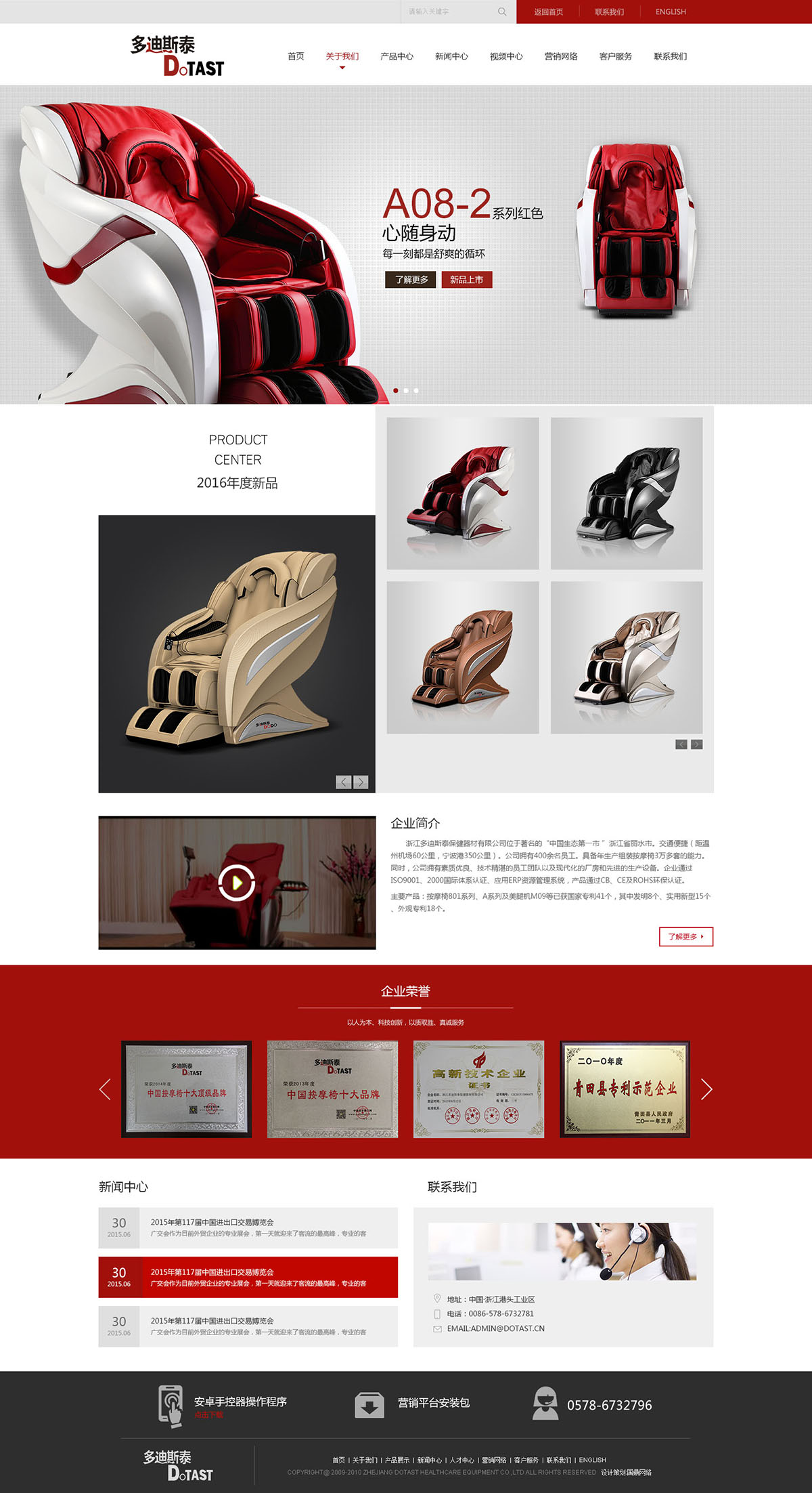 浙江多迪斯泰保健器材有限公司位于著名的“中国生态第一市 ”浙江省丽水市。交通便捷(距温州机场60公里,宁波港350公里)。公司拥有400余名员工。具备年生产组装按摩椅3万多套的能力。 同时,公司拥有素质优良、技术精湛的员工团队以及现代化的厂房和先进的生产设备。 企业通过ISO9001、2000国际体系认证、应用ERP资源管理系统,产品通过CB、CE及ROHS环保认证。
