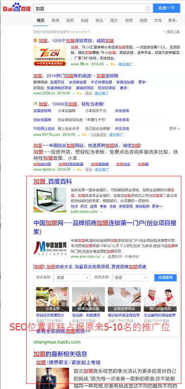 再看SEO的排名位置,上升到了之前百度第5-10的推广位: